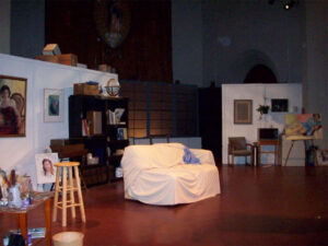 It is presented here to tell a little ‘more about the play,’ and shows its original authors, Shakespeare and Saint Paul, walking through their set (above) – unbeknownst to them here, changed from a Convent to a Painter’s Loft – already a glimmer in the mind of their servant in a quantum’s stretch of time and space.